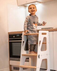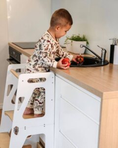 - Tool on suureks abiks köögis toimetamisel, kuna lapsed jõuavad sellele astudes mugavalt töötasapinnani.