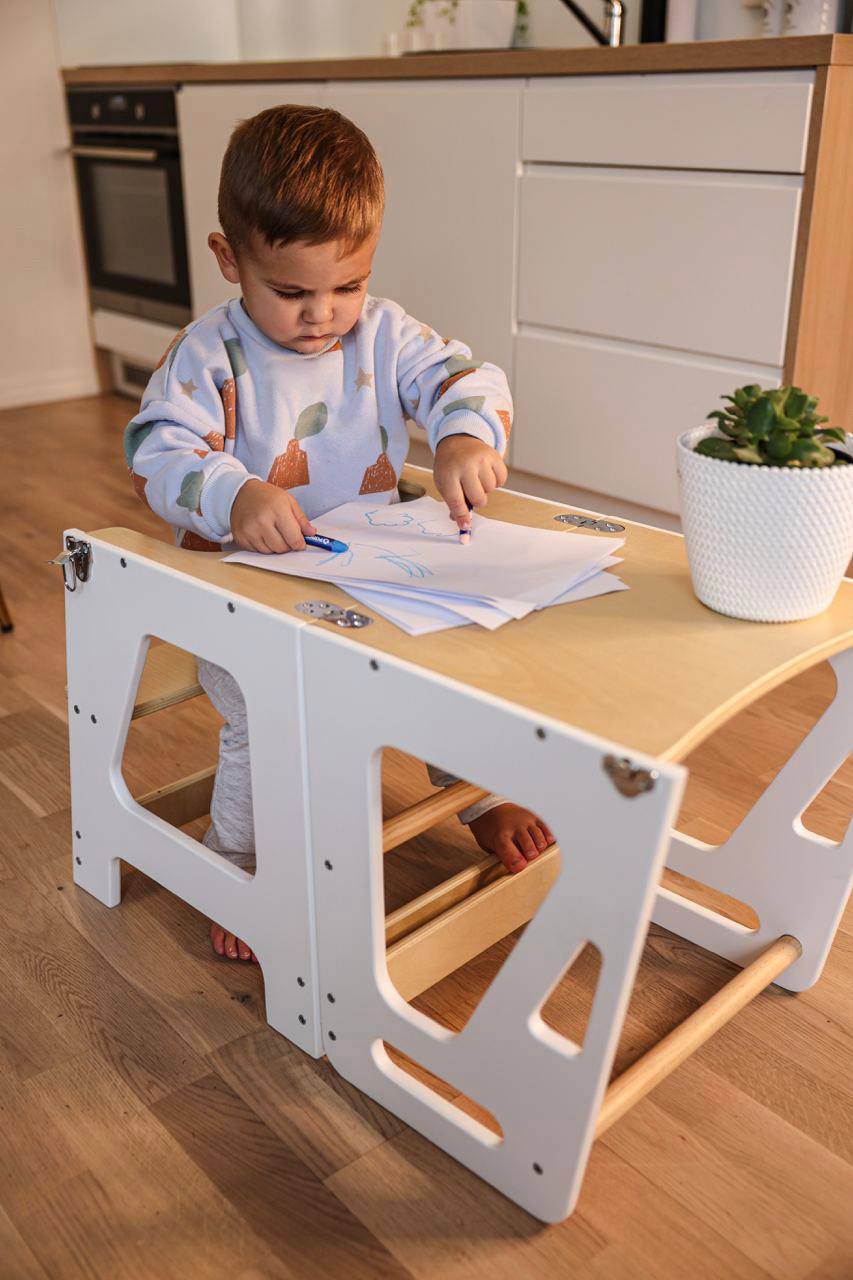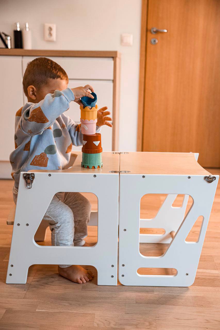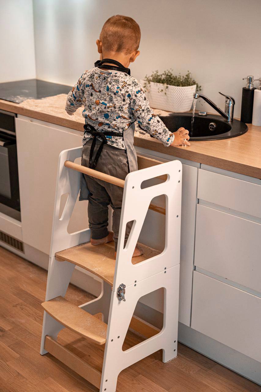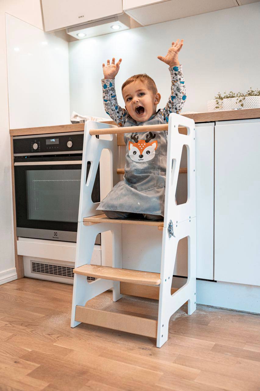 KIFFT torntooliga lapsed ulatuvad mugavalt köögilaua ääreni ja saavad vanematega köögis abiks olla. See KIFFT torntool aitab ka iseseisvalt hammaste või käte pesemisel. Torntooli saab hõlpsasti muuta lauakomplektiks, mis teeb sellest praktilise lahenduse ruumi säästmiseks. Nüüd saavad lapsed nautida köögis toimetamist täies mahus!